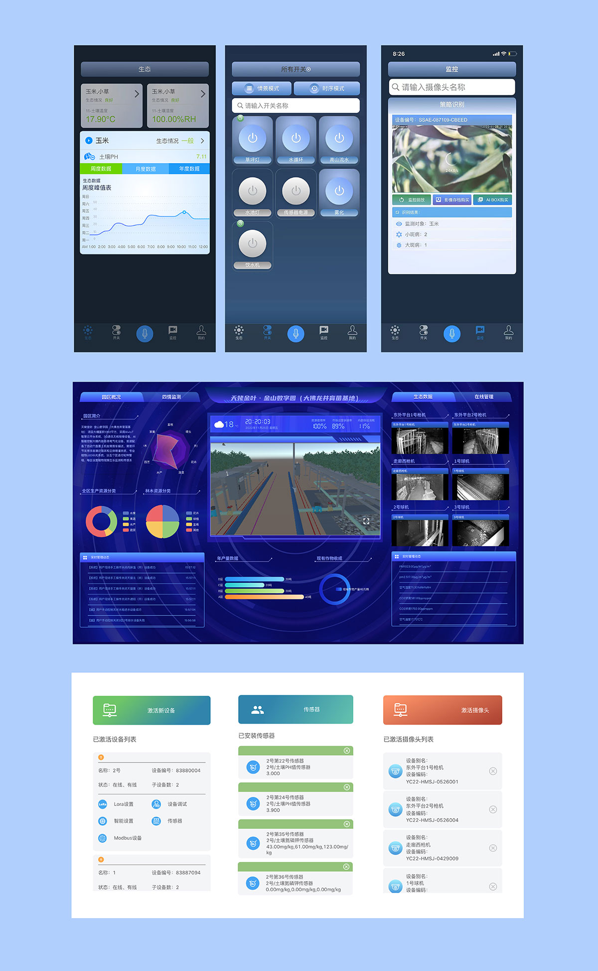 2.設(shè)備管理:網(wǎng)關(guān)、LoRa、傳感器、繼電器、攝像頭等硬 件設(shè)備統(tǒng)一管理;