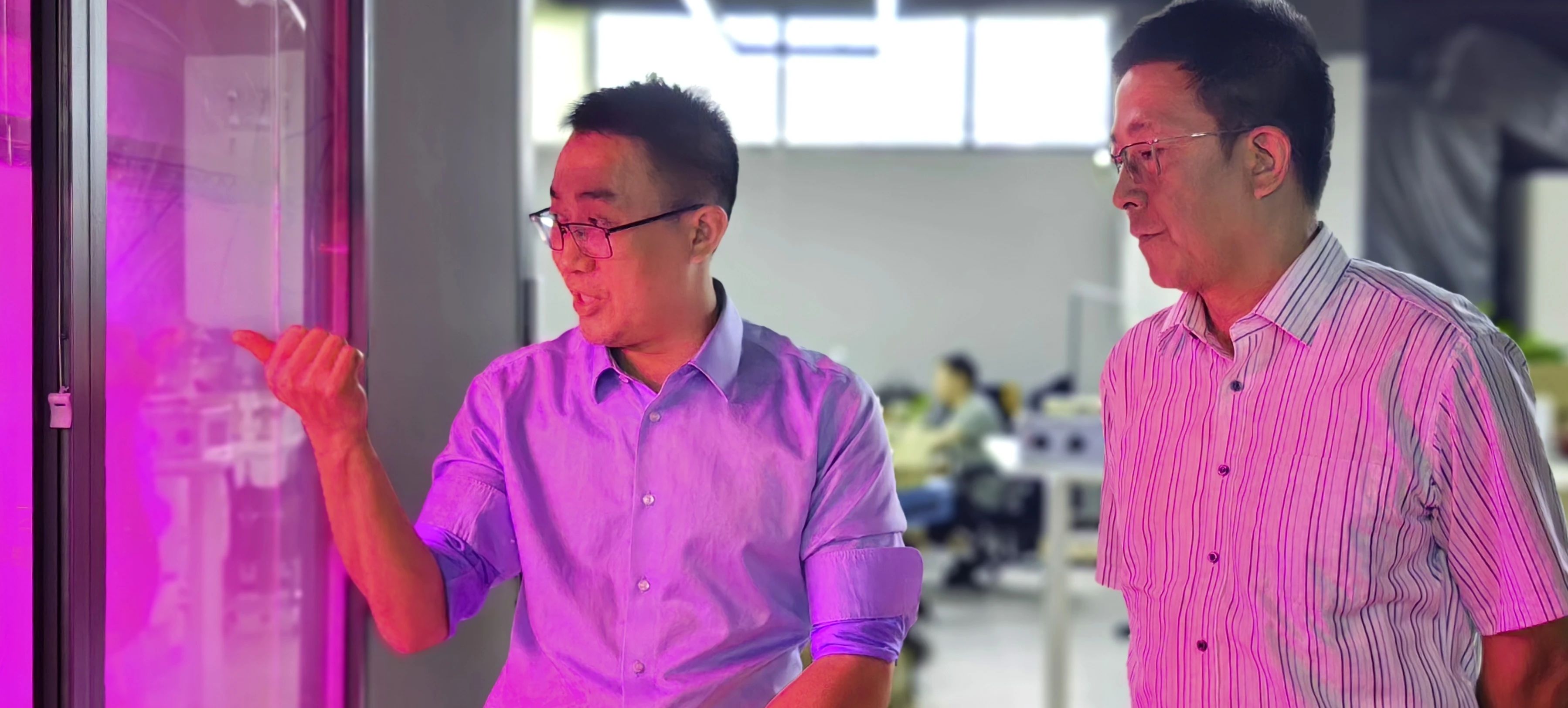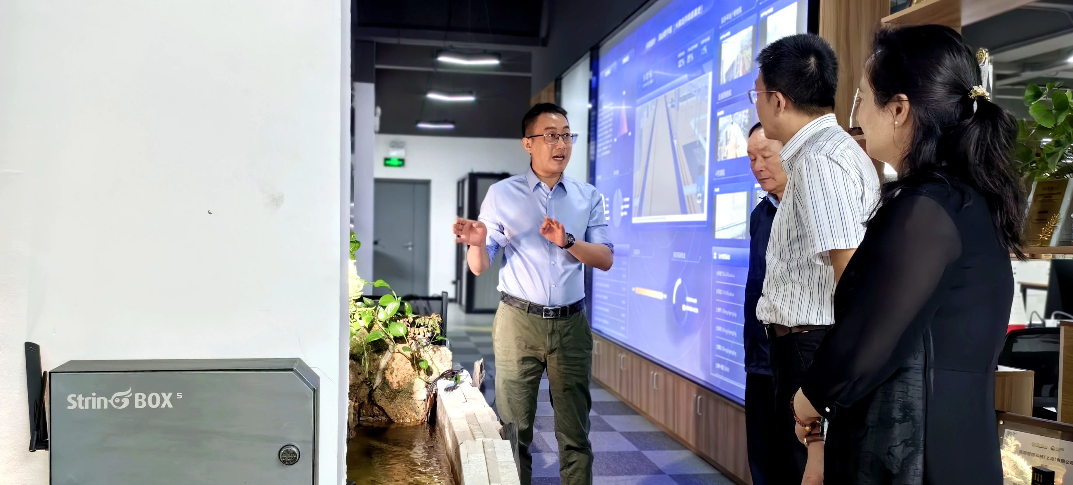 安浚帶領(lǐng)大家參觀公司的展品區(qū)、景觀區(qū)、數(shù)字大屏區(qū)、植物工廠試驗(yàn)區(qū)以及研發(fā)區(qū),詳細(xì)介紹了滴翠智能的技術(shù)創(chuàng)新和業(yè)務(wù)發(fā)展。交流中,王震主任在介紹完交流中心職能后,強(qiáng)調(diào)了科技創(chuàng)新對于農(nóng)業(yè)現(xiàn)代化的重要性,他指出,智慧農(nóng)業(yè)不僅要依賴于高新技術(shù)的引入,更要注重技術(shù)的本土化和實(shí)用性;楊慶根主任從產(chǎn)業(yè)發(fā)展的角度出發(fā),分析了智慧農(nóng)業(yè)在推動區(qū)域經(jīng)濟(jì)發(fā)展中的作用,并對滴翠智能提出建議,提前布局做好數(shù)據(jù)庫的建設(shè)和完善工作,并表示通過科技手段提升農(nóng)業(yè)效率和產(chǎn)品質(zhì)量,是實(shí)現(xiàn)農(nóng)業(yè)可持續(xù)發(fā)展的關(guān)鍵。